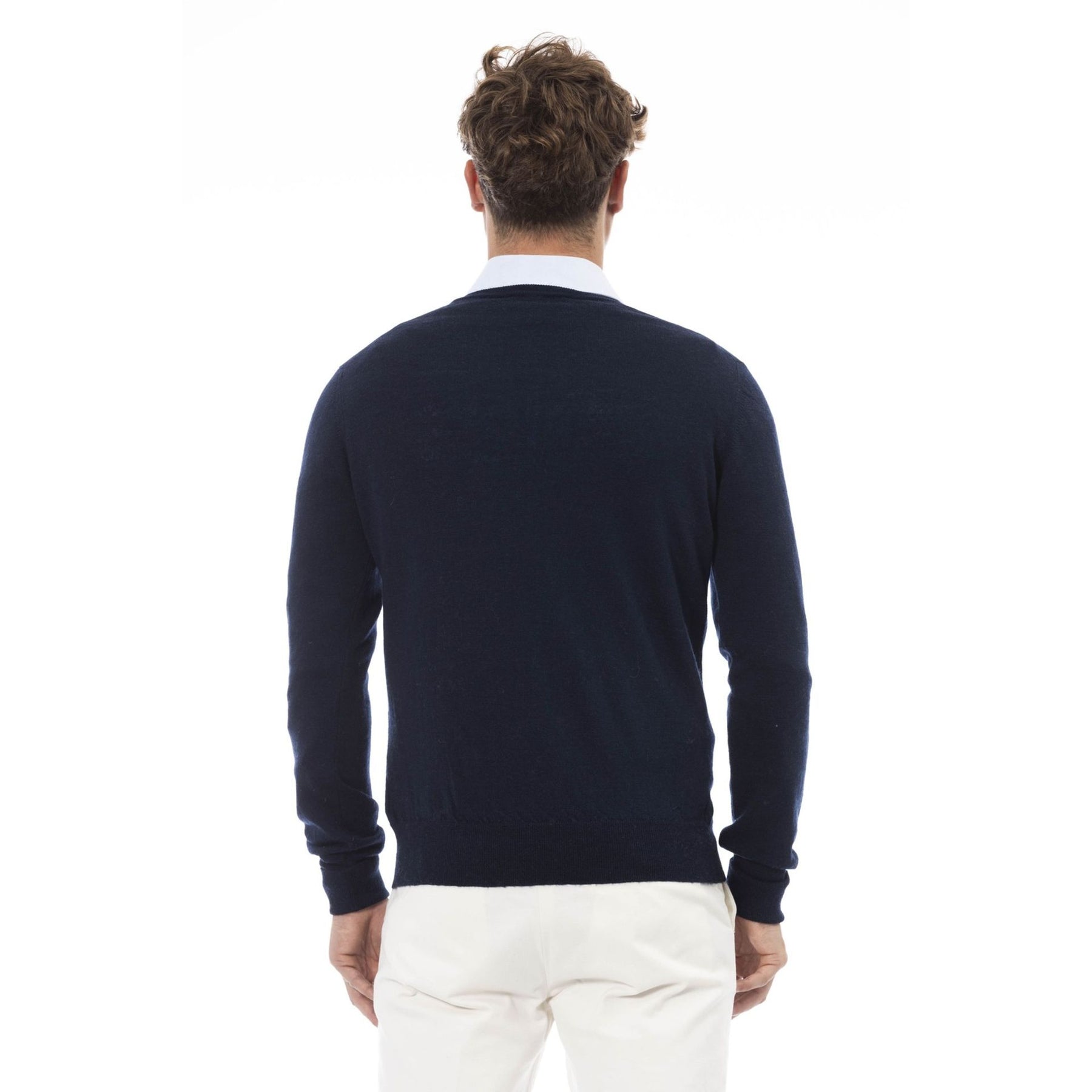 Exuding Italian elegance and comfort, the Alpha Studio V-neck sweater is crafted from a luxurious blend of wool 75% and acrylic 25%, providing warmth while remaining soft to the touch. The long sleeves and ribbed hems offer subtle detailing, while the V-neckline allows for versatile layering over shirts or under jackets.